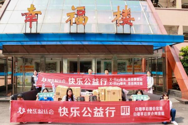 2018年4月3日下午,快乐粉丝会联合岳岳X-Ray极光数据站、网攻组和白敬亭后援会为长沙市第一社会福利院的老人孩子们捐赠物资