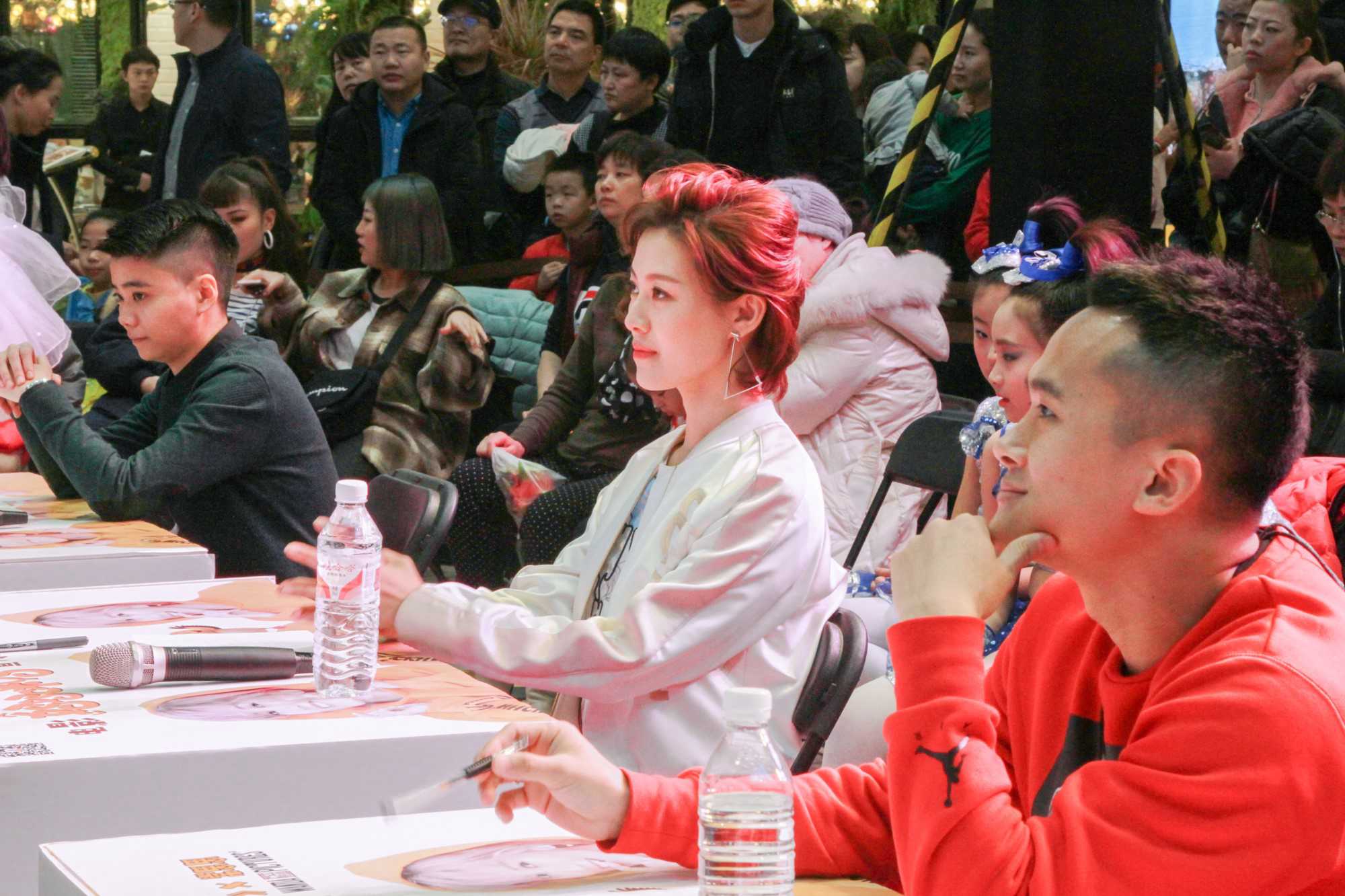 比赛当天,常思思不惧寒冬身穿牛仔热裤搭配白色夹克,尽显青春靓丽。与《小鸡小鸡》等众多神曲编舞大师冯超和中国顶级编舞大师赵力萱一起组成最强评委团。本次比赛在短时间内吸引了大量选手报名,参赛的选手年龄也从6岁至60岁不等,比赛共分三组,分别是少儿组、流行舞组和广场舞组,可以说是一场真正的全民舞蹈大赛。比赛开始,《大梦想鸭》的魔性旋律和选手们活力四射的舞姿瞬间吸引了商场大批的路人,纷纷向舞台靠拢,极具感染力的歌曲和欢快的鸭子舞使得台下的观众也不禁跟着选手舞动身体,一同感受鸭子舞的魅力,现场气氛十分火爆。而选手们的表现也精彩纷呈,在初赛环节选手自由编排的鸭子舞创意十足,得到常思思的大力称赞。最后有六组选手晋级决赛,在决赛前作为鸭子舞的首创者常思思亲自登台教现场观众大跳鸭子舞,常思思热情洋溢的讲解亲和力满分,现场观众也完全融入到鸭子舞的火热魅力中,迅速学会鸭子舞的经典动作。常思思不仅在比赛现场与选手积极互动,更是在手机直播中与众多网友大方分享举办这次比赛的初衷,目的是想让大家通过舞蹈收获快乐。比赛持续三个多小时,从头至尾观众爆满,热情高涨。黄淘淘的惊喜现身,更是让现场气氛爆棚。比赛的最后,来自童心艺术团的六位小选手荣获冠军,常思思在现场鼓励其他的选手并表示在她心里每一位选手都是第一名。