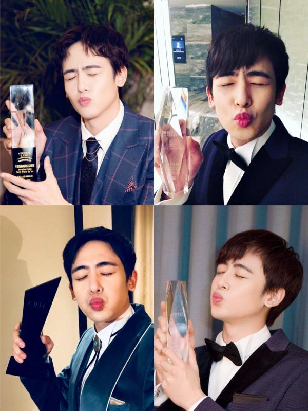 领奖的同时尼坤也不忘和粉丝分享获奖的喜悦,不仅在现场用中英双语发表了获奖感言还给大家送上了新年祝福;解锁了晒奖杯新技能的他还频频在社交媒体上po出嘟嘴卖萌的奖杯认证照,向来以翩翩有礼的绅士王子形象示人的尼坤卖起萌来也是得心应手,粉丝评论到“这样卖萌很犯规哎~”“请继续不要停!”。