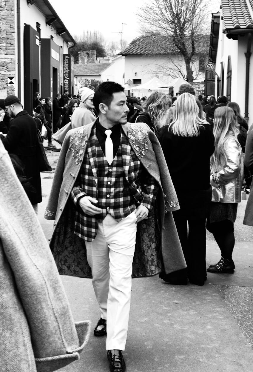 在文艺复兴发源地佛罗伦萨参观菲拉格慕博物馆时,杜奕衡选择了一套BOSS复古皮衣,搭配的蓝色围巾即契合了皮衣的怀旧感,也精妙地提升了他飒爽英拔的气质;而受邀参加malo品牌发布会时,杜奕衡选择了凯宾驰私人定制方格西装搭配孙笠轩高级定制灰色礼服,儒雅且稳重;最后在受邀参加佛罗伦萨PittiUomo展时,他智慧地选择了一件带盘扣和手工刺绣,领口、袖头有彩色牙子盘滚设计的中国风大衣,带着大将军的轩昂气宇,杜奕衡俨然成为意大利一道时尚风景。诸多国际时尚名模驻足与其合影,更有海外粉丝团认出杜奕衡,直呼他为“大将军”。