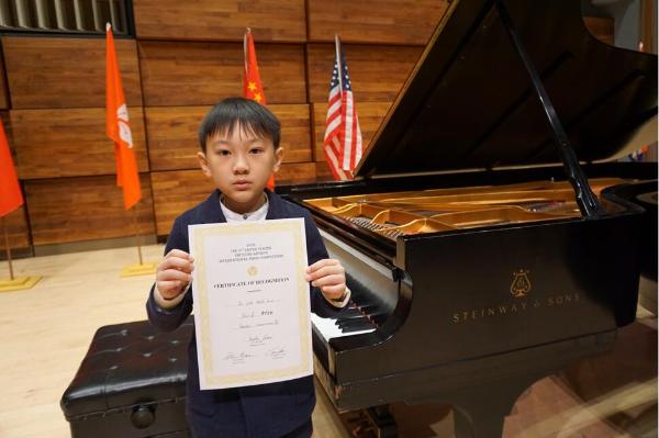 子淇就是文章开头那个得到了大赛组委会评委主席盛赞的小姑娘。在美国的一曲《吉普赛回旋曲》让她赢得了比赛组别的第一名,更赢得了荣誉和肯定。7岁的年龄,可能她自己还不知道经历的是什么,但是在跟随廖老师学琴的半年时间里,她的钢琴之路可以说是芝麻开花节节高:全港学生公开赛钢琴5级第三名;香港校际音乐节钢琴4级第二名;此次美国国际钢琴比赛参赛组别的第一名……