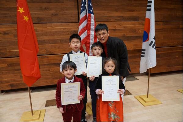 杨青霖在美国比赛演奏的是《车尔尼练习曲》,没错,他也是第一名的获得者,并且是此次4名学生里年龄最小的一个,只有6岁。别看他跟廖老师学琴才1年半,但他已经是登上过香港文化中心、领衔过70人交响乐团的表演主咖、并受到泰国国王的亲自接见,近日,小青霖也得到香港艺术节邀请前往香港亚州博览馆于开幕式上演出自己写的作文──《我的梦》。将集于音乐、朗诵、画画、多媒体、室内乐呈现给观众。