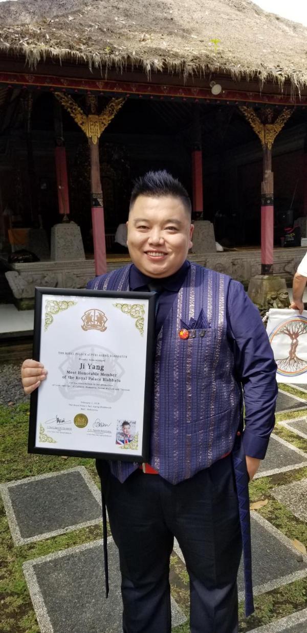 据悉,中国获奖者吉阳此次在巴厘岛亚太电影奖中获得“最佳国际制片人”奖项,由爪哇岛国王sir Anglung prabu punta Djajahagara wnire attire亲自为其颁奖,曾经爪哇岛重港三宝垄,是郑和下西洋的重要港口,爪哇岛国王专程从三宝垄赶过来参加盛典,这也是对中国和东南亚文化艺术交流的重要认可。颁奖现场,吉阳身穿正装,胸口佩戴的中国国旗胸章显得十分耀眼,获奖感言更是让全场为其鼓掌,他称道“首先要感谢我的国家,是中国影视齿轮的飞速运转,才成就了我的今天,成就了这个奖项,我也是代表中国来领奖的,我希望将中国文化和影视作品传递到国际平台,这是最好的文化传播手段,让国外民众在观看的过程中获得愉悦、感受魅力,加深对中华文化的了解,传递更多的中国特色文化与内涵。”他的爱国精神以及社会责任感让不少影迷称赞不已。