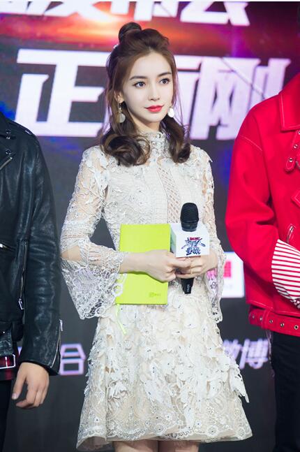 3月15日,Angelababy现身综艺节目《机器人争霸》开播发布会。