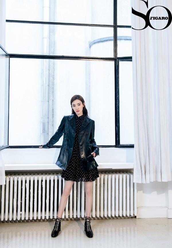 昨日,王丽坤一组时尚刊封面大片曝光。封面中的她一袭正装外套、短裤以及过膝大衣均为黑白格图样,露出一双纤细的长腿搭配黑色漆皮矮跟皮鞋,圆头的设计使其乖巧了许多。她的身旁摆放着印有抽象派画作的花瓶,在充满艺术气息的氛围中文艺范十足。当王丽坤换上颇有中式复古板型的黑色羊毛外套时,修身的剪裁立即突显东方美的气质。她偶然在窗边远眺,及肩微卷的长发下是一套蓝白条纹的府绸衬衫,思绪被她的神情带到了远方。王丽坤身上有一股自然之气,云淡风轻的外表下却积蓄了巨大的能量,面对挑战从不懈怠,迎难而上是她骨子里的性格。