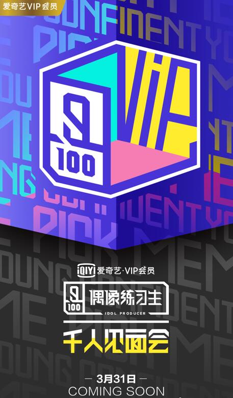 2018开年爆款综艺《偶像练习生》播放进程已过半,从开播伊始的各方关注到如今的全民刷“偶练”,这部超级网综无数次地打破播放量纪录,也刷新着大众对新生代偶像的定义。而爱奇艺VIP会员品牌为了回馈所有支持《偶像练习生》的全民制作人,即将在3月31日举办一场成团出道前的千人见面会,满足粉丝想与练习生们首次近距离接触的愿望。
