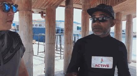 虽然不能直播救援,但《极行者》仍然冒着潜在危险,在海湾为大家奉上了他们的自由潜直播。当地人用鱼枪在海底进行渔猎,获得来自大自然的食物。
