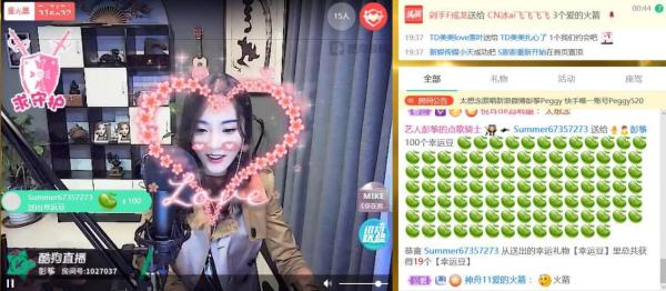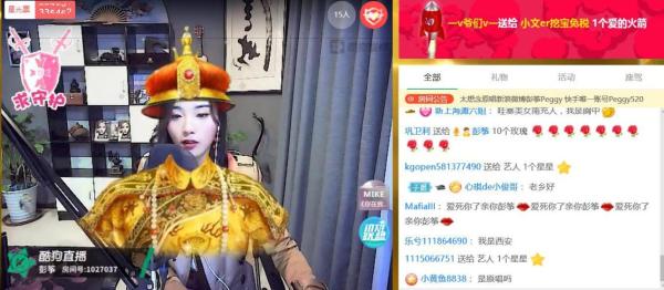 《戏精》唱罢后,彭筝在粉丝们的热情下,又接连献唱了《爱我》、《体面》、《别用她的感情伤我的心》等多首歌曲,引发了粉丝们的刷礼狂潮,音乐晚餐、真爱火箭、幸运摩天轮等各种豪礼,不停地占据着直播间屏幕的中心位置,连彭筝的小脸都挡住了!唱到一半的时候,还有一名粉丝给彭筝“穿”上了一件“龙袍”,让她感叹原来还有这样的礼物啊~“好有趣啊,筝筝这样算是做皇帝了吗?”有的粉丝忍不住出来逗趣彭筝,“就算是皇帝也肯定是一个慵懒的皇帝啦~”看来在粉丝们的眼里,彭筝又萌又可爱,不太适合当“皇帝”呢~