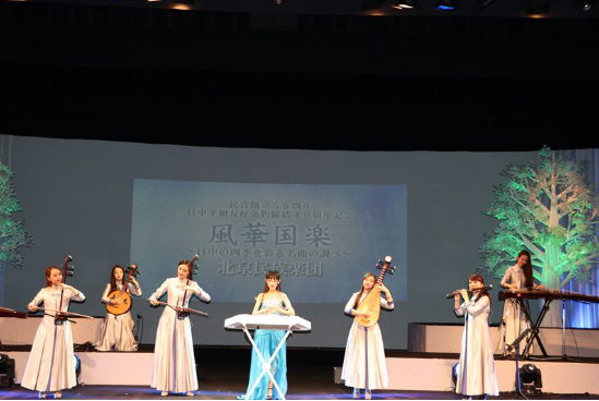 今年是《中日和平友好条约》缔结四十周年,同时也是日本民主音乐协会(民音)创办五十五周年,正值中日关系显著改善的大背景,借此良机民音特别邀请了北京民族乐团于2月14日至4月29日赴日本全国四十八个县巡回演出五十场。作为文化的使者,此次北京民族乐团将中国传统特色民族音乐的悠扬韵律带到了日本的舞台,对传承发展中国民族音乐,开展对外交流合作起到了积极的作用,也为中日和平友好做出了自己的贡献,为中国民族音乐在世界舞台的魅力绽放又谱上一曲绚烂的乐章!