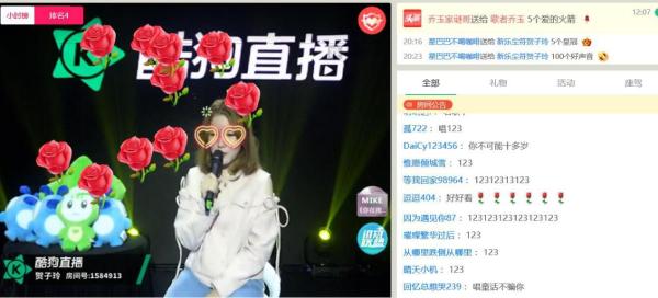 虽然大家进来的渠道不同,但无一例外都在公屏上排排刷起了“123我爱你”。“好多人刷这首歌啊!”首次做客酷狗直播的贺子玲,可能也没想到自己的人气会这么高,一张小脸写满了惊讶。而在点歌单上,粉丝们也争相点起了《123我爱你》,总共点了有5首之多,充分展示了这首歌的热度。