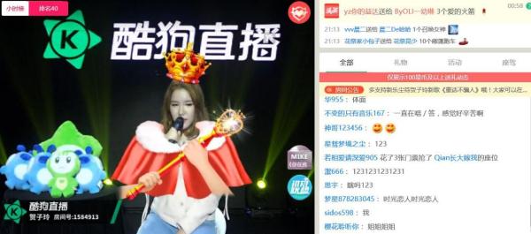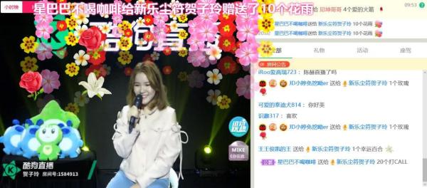 虽然对《123我爱你》的旋律早已烂熟于心,但很多粉丝却未见过原唱真人。原来贺子玲是一位笑起来特别甜的小姐姐,直播间里的她身穿一件白色的雪纺衬衫,显得青春而有活力。首唱会上刚一开场,就有将近4万名粉丝急急地涌入了直播间中。除了专门为直播而来的铁杆粉,也有不少是正在酷狗音乐听着《123我爱你》的网友,很多人表示听着歌发现原唱正在直播,立马就兴致勃勃赶进来了。