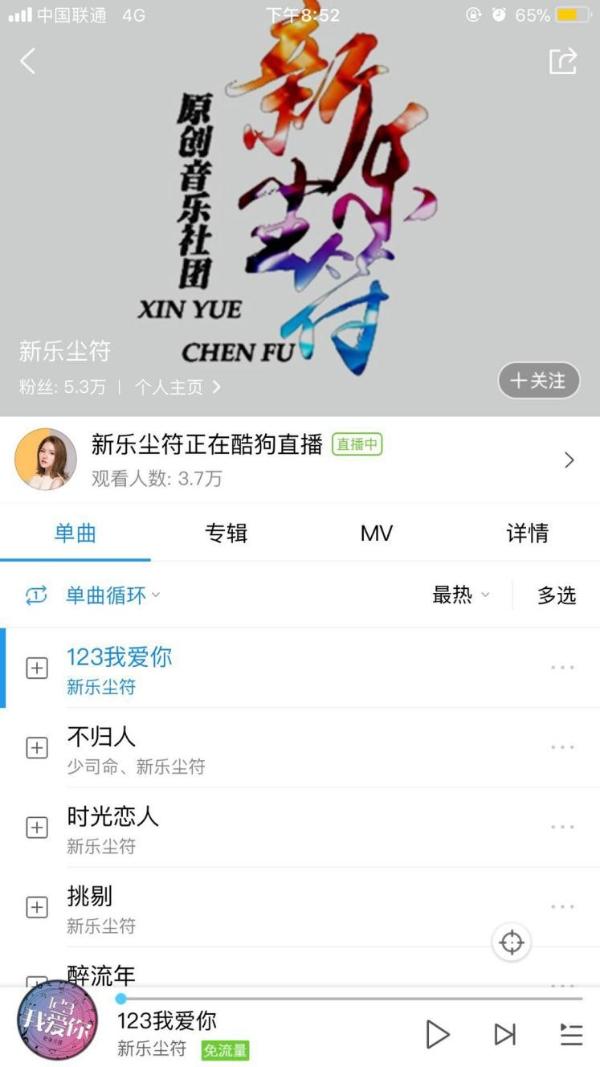 2018年初,一首朗朗上口的小情歌《123我爱你》一经推出立刻迅速蹿红,单在酷狗音乐的评论就突破100W,引发了一波又一波的网络传唱热潮,无数网友为它疯狂打call!3月23日晚,《123我爱你》原唱、新乐尘符的贺子玲唱响酷狗直播间,用她清新甜美的嗓音为大家献上“爱的告白”,首次直播的她一晚上就增粉一万!