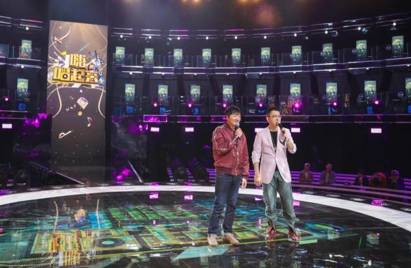 《嗨,唱起来!》作为一档“全民共唱”综艺秀,现场首创“百人合唱环节”,每期百名达人歌手共唱同一首经典歌曲,由百台酷狗超级K歌机连线提供点唱支持。搭配罗马圆形斗兽场概念的舞台,使唱歌变成一种全景式的共情体验,让现场与坐在电视机前的观众,都能“嗨唱”起来。