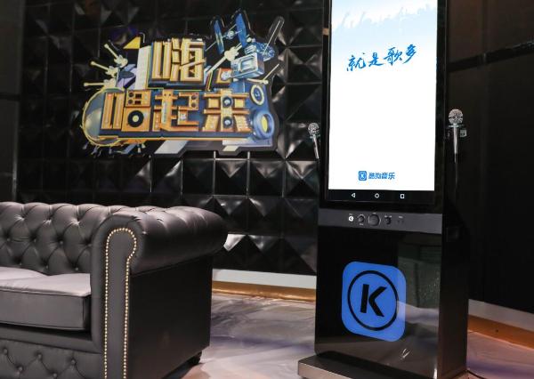 (图为“百人合唱环节”中的酷狗超级K歌机)