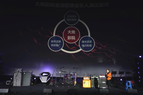 继颁奖礼之后,大地影院集团总经理于欣登台致辞,正式向外界公布大地“音乐me现场”计划,将在2018年联合三三零音乐在十地举办200场音乐演出。于欣称,2017年大地已在业内首次将音乐演出——“me现场”搬进电影院内,首轮试水非常成功,受到了业内的肯定和粉丝的追捧。