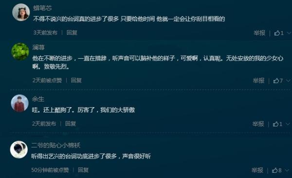 张艺兴的朗诵音频在酷狗音乐完整上线后,评论简直要疯掉。那不是《极限挑战》中呆萌羊的声音,也不是二月红求药的嘶吼,而是一位24岁的年轻烈士,在家国大爱面前,所表现出的悲壮就义之情。生动的诠释,令不少网友在酷狗中评论道“艺兴的台词功底进步了很多”。