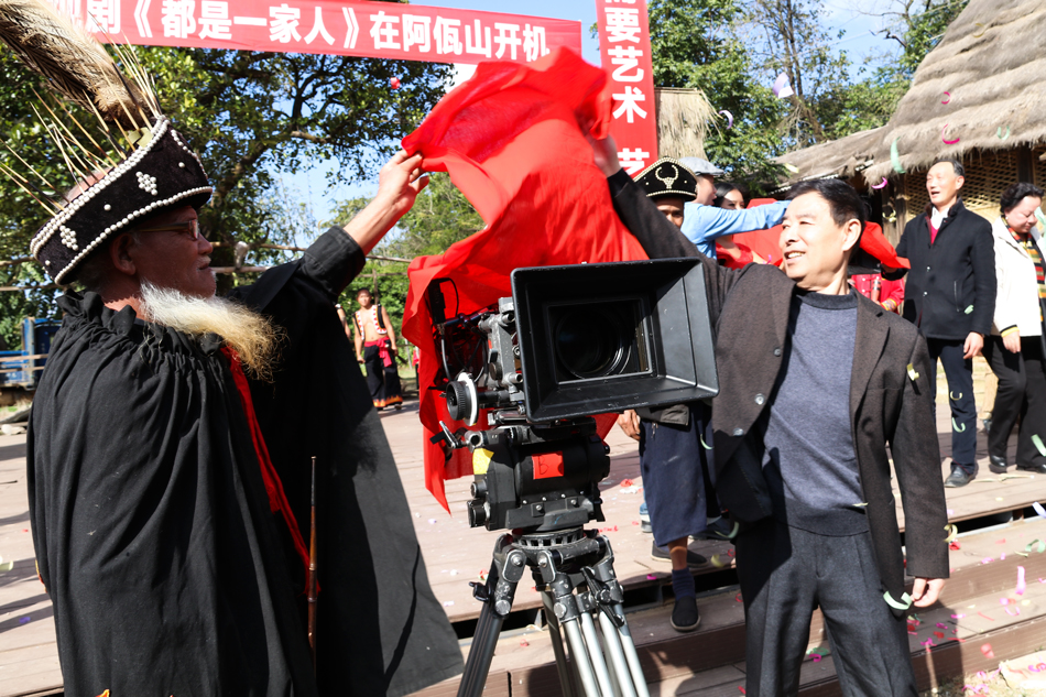 2017年12月18日,云南临沧市沧源佤族自治县翁丁佤寨的老百姓敲起木鼓、举起米酒,欢庆一部反映当代各族人民守望相助、共同奋进的电视剧《都是一家人》在此开机拍摄。