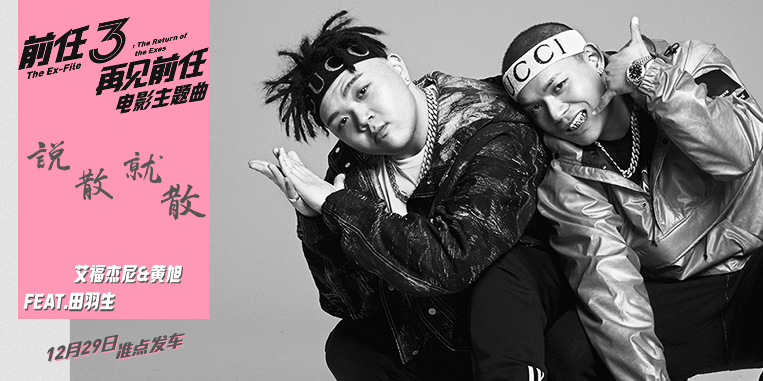 电影《前任3:再见前任》继前日曝光袁娅维女版主题曲后,今日由艾福杰尼、黄旭演唱的rap版准时发车上线,嘻哈曲风带来全新的视听体验。本次曝光的新曲与早前曝光的抒情版《说散就散》截然不同,以嘻哈的风格和男性视角将歌曲的内涵重新诠释,令无数听众耳目一新。而歌曲MV中穿插电影画面,见证男人在爱情中的成长心路。不同于艾福杰尼和黄旭以往较为“燃燥”的音乐作品,整首歌曲多了一份不一样的柔情与深刻。其中,副歌部分由导演田羽生开嗓演唱,搭配简单却富有深度的歌词极具感染力,以男性口吻表达对爱情的感悟和理解。